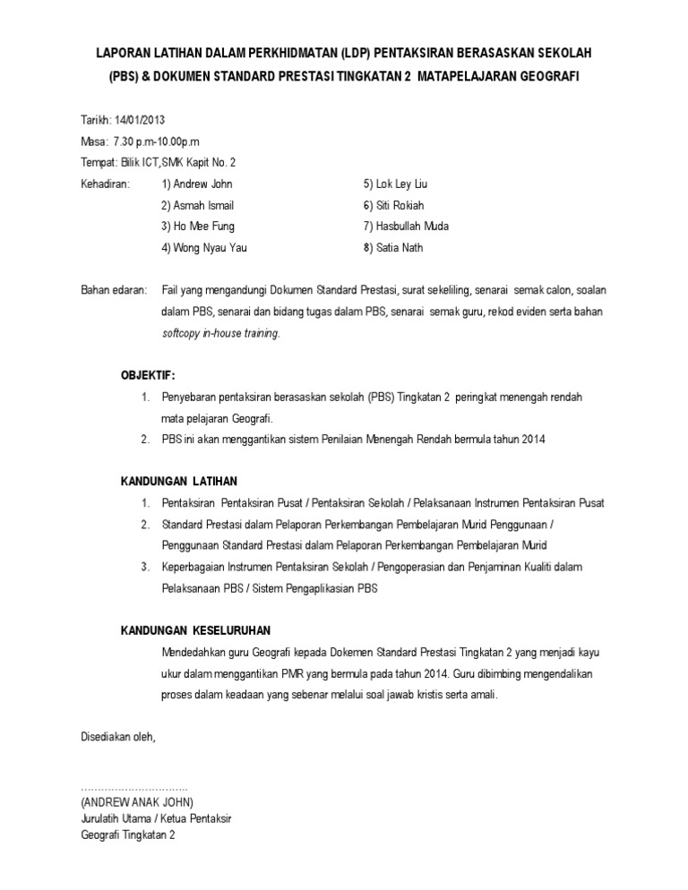 Laporan Latihan Dalam Perkhidmatan Ldp Pbs Pdf