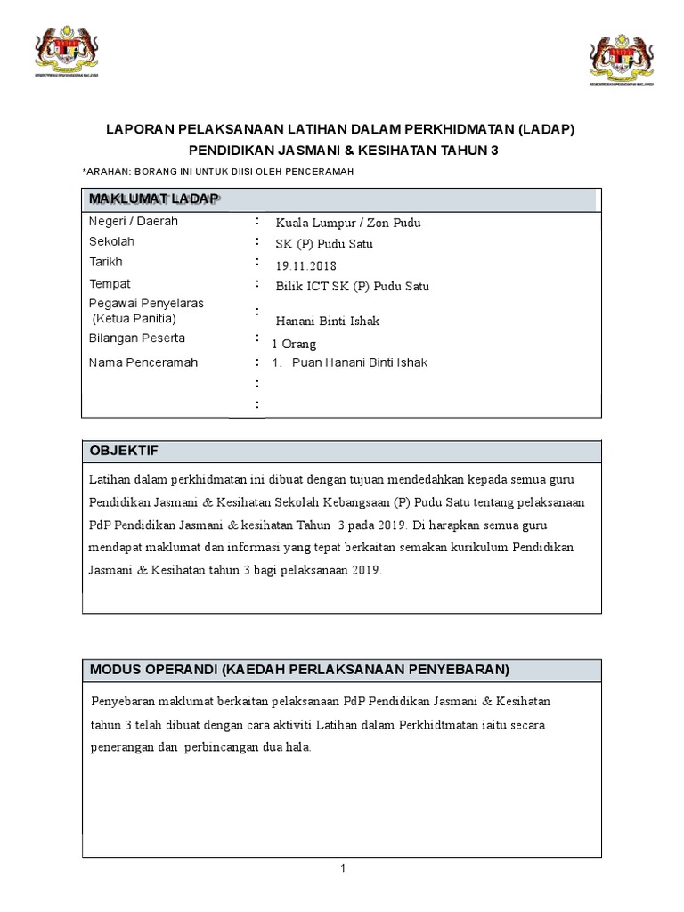 DEWAN DAMIAN SMK ST. Latihan dalam perkhidmatan ladap Match case Limit results 1 per page. Contoh Laporan Latihan Dalam Perkhidmatan Ladap prev.